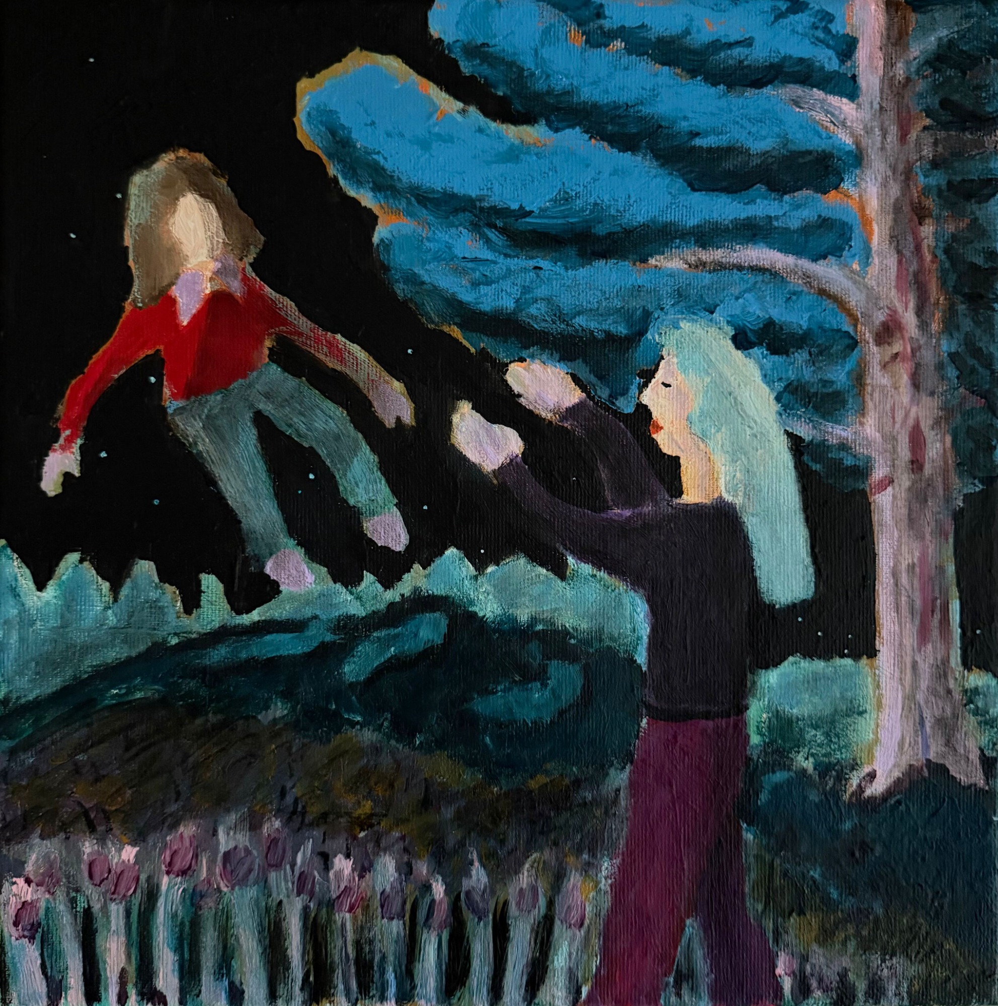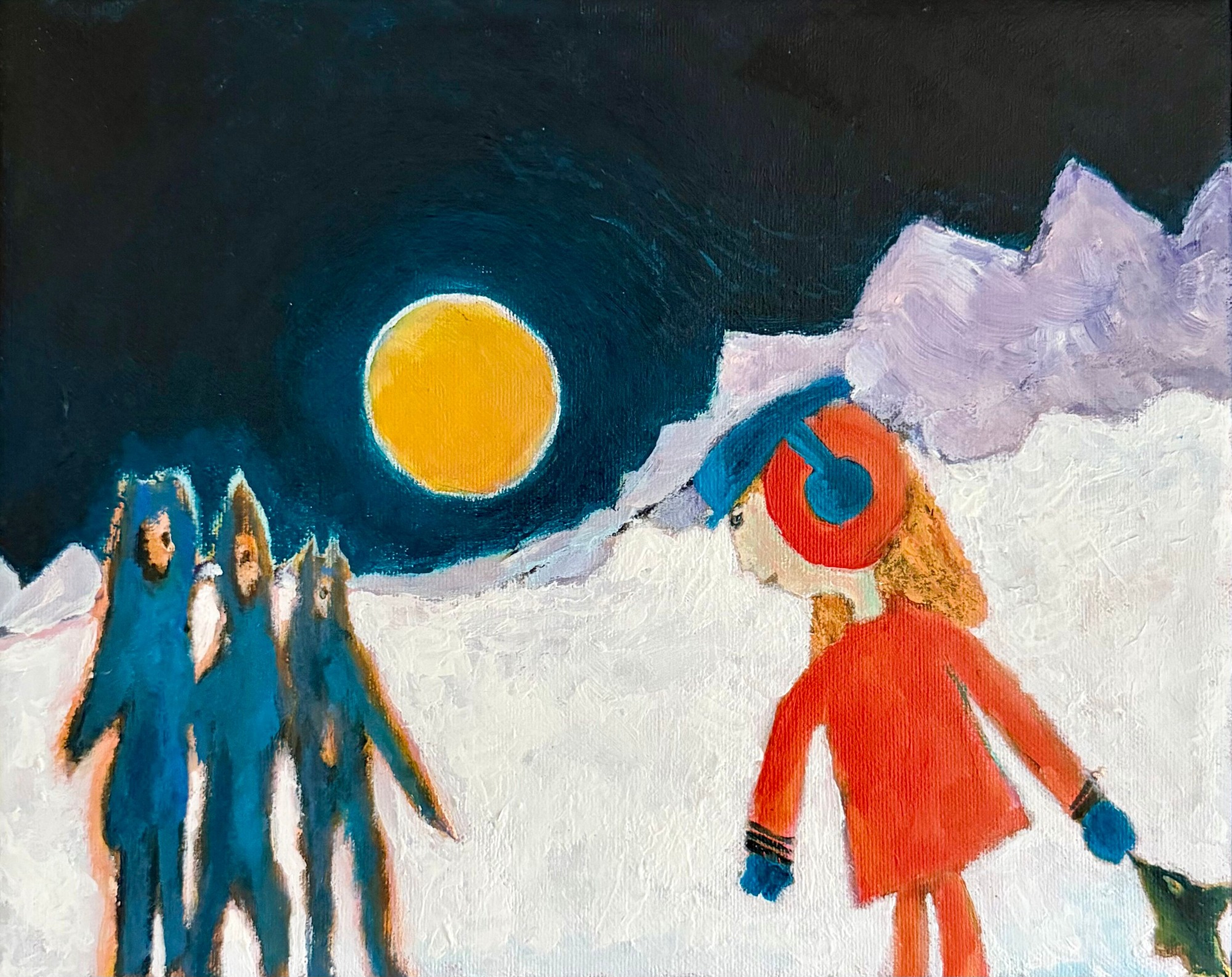 This series explores encounters with the ancestors. Various figures traverse landscapes and inner worlds, creating a dialogue between history, myth, and imagination. Each painting captures a fleeting interaction that reflects the invisible threads linking past and present.